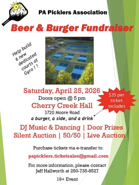 Join us for a Beer & Burger Night on April 25th and help push Port Alberni pickleball into its next chapter. We’re down to the final 30% of monies required to build 6 new dedicated courts.
